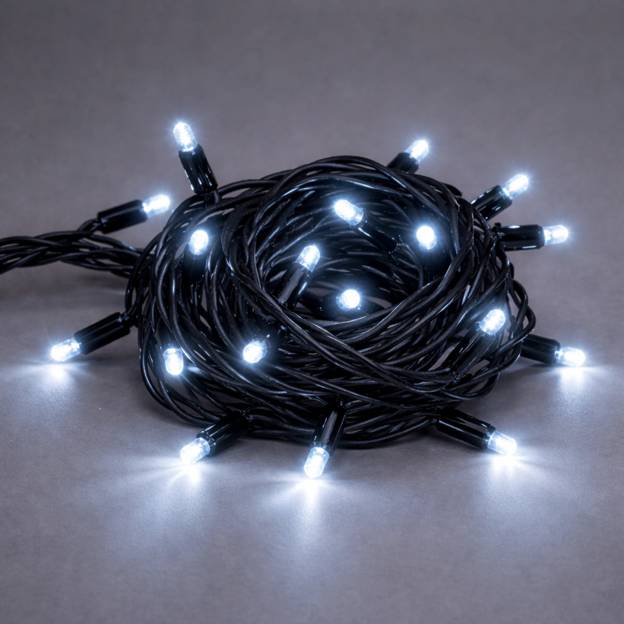 LED svetelná reťaz, 30 LED, studená biela, prepojiteľná, čierny kábel, 1,5 m