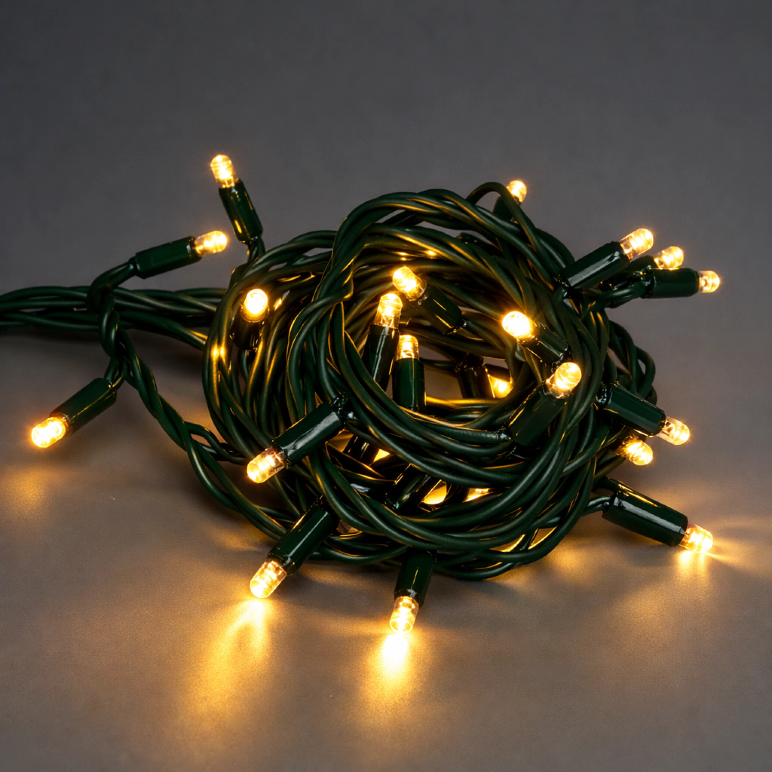 LED svetelná reťaz 100 LED, teplá biela, prepojiteľná, zelený kábel, 10 m